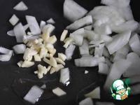 Готовим соус маринара. Мелко нарезаем кубиками лук и чеснок, пассеруем пару минут на оливковом масле. |