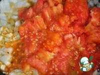 Сока к рису должно быть по пропорции 2,5 к 1. У меня ушло 2 крупных помидора. |