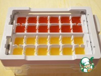 3. Заполнить формочки для льда апельсиновым и арбузным соком. |