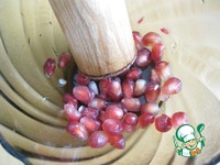 Из граната выжать сок. Я небольшими порциями толкла зёрнышки и процеживала через ситечко. Получилось примерно пол-стакана с большого граната. |