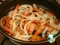 Нагреть сковороду и обжарить бекон. В зависимости от жирности бекона может понадобиться масло для жарки. Добавить лук. Обжарить 2-3 мин. |