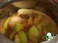 Добавить пиво, поставить на средний огонь и довести до кипения. Проварить яблоки примерно 20-30 минут, интенсивно не перемешиваем, достаточно легкого потрясывания. |