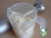 Взбить блендером один банан (предварительно очищенный), 120 г сметаны и 90 г сахара до кремообразного состояния |