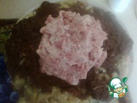 Перемолоть сало, печень, лук. Я добавила еще фарш-ассорти. |