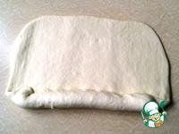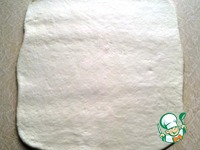 Через 30 минут аккуратно выложите на стол и сразу скалкой сформируйте пласт прямоугольной формы. |