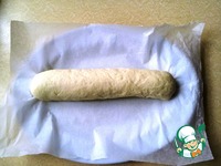Дополнительно сформируйте батон. Положите на пекарскую бумагу швом вниз. Накройте пищевой плёнкой. Оставьте на 1-1,5 часа. |