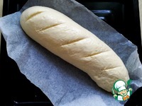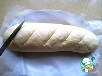 Духовку вместе с противнем нагрейте до 220 градусов. Переложите батон на горячий противень вместе с пекарской бумагой. |