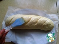 Смажьте поверхность батона водой. Я смазывала смесью желтка и воды (желток был в холодильнике) |