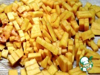 Для начинки. Очищаем тыкву от кожуры и семян. Нарезаем кубиком. Также нарезаем очищенный картофель. |