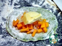 Описание: Яркие, сочные, полезные манты получаются по этому рецепту. Зеленое тесто отлично сочетается с ярко- оранжевой тыквенной начинкой. А уж как это вкусно - словами не передать!