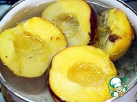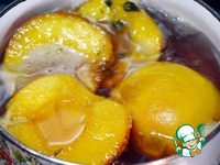 Персики вымыть, разрезать каждый пополам, удалить косточки, положить в горячий сироп и готовить на небольшом огне 10 минут. |