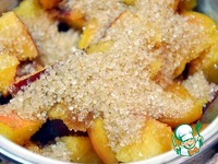 На сковороде посыпать персики сахаром, добавить воду, потушить 2 минуты. |