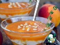 В порционные стаканчики выложить слоями: персики в сиропе. |
