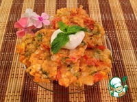 В овощную смесь всыпаем муку. В следующий раз положу меньше муки - грамм 180. |