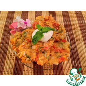 Описание: Какой-то хозяйственник проснулся в моём муже, когда он принёс домой несколько килограммов помидоров - теперь у нас дома начинаются томатные дни))) Оладьи готовила полностью по рецепту, от себя только щепотка базилика, который, как мне кажется, помидорам всегда на пользу. Но я бы рецепт немного изменила. Выкладываю оригинальную версию со своими комментариями. Надеюсь, вам понравится!