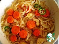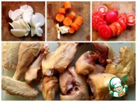 Овощи почистить, помыть, нарезать крупно. Цыпленка помыть, обсушить полотенцем, разделать. |