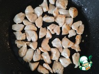 Лисички вынимаем из сковородки, откладываем. На их место кладём курицу и жарим её до лёгкой корочки. |