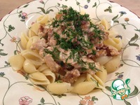 Подаём выложив на макароны грибы в соусе, посыпав рубленой зеленью. Приятного аппетита!!! |