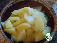 Тем временем варим на пару очищенный и порезанный на кусочки картофель в течении 30 минут. |