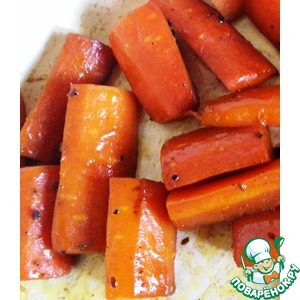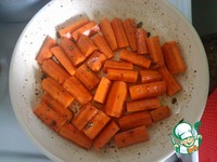 Сковороду разогреть добавить все ингредиенты кроме моркови, дождитесь пока растает сахар.
