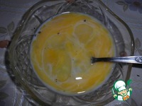 2. Пока варится курица, приготовим омлетные блинчики. Для этого крахмал просеиваем в молоко, перемешиваем, чтобы не было комков. Добавляем по одному яйца, соль, готовим однородную массу. |