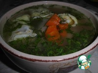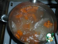 6. Процеживаем бульон, солим и добавляем приправу, нарезанные морковь и лук. Варим ещё 15 минут. |