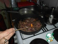 1. Печень промываем, очищаем. Обжариваем лук, добавляем печень и обжариваем быстро - до прозрачного сока. |