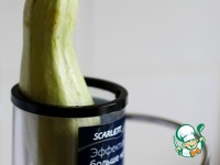 Ставим на 2 режим и целиком пропускаем кабачок. Раз-два, тихо-быстро и сок готов! Из 800 гр (3 кабачка) вышло 400 мл сока и 250 гр жмыха. |