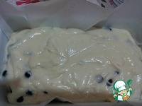 Форму выложить пергаментом ( у меня размер 13 на 24 см) и выложить тесто. |