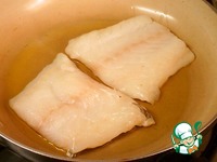 Треску нарезать на порции по 150 г примерно. Разогреть сковороду с маслом и положить куски трески кожей вниз. Обжарить в течение нескольких минут, снять со сковороды. |