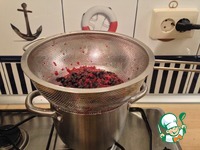 Ягоды откидываем на дуршлаг, сливая сироп в ёмкость! |