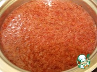 Бруснику пробиваем блендером и отжимаем сок. Убираем пока в сторону. В кастрюлю налить воды и положить жмых который остался от ягод и провариваем 10 мин. |