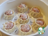 Описание: Буузы, позы. Очень вкусные, практически диетические манты, приготовленные при помощи незаменимого в быту предмета - мультиварки. Мне очень нравится такой способ лепки, очень удобно на них, так как они открытые, капать уксус. Впрочем, решать вам, как и с чем их кушать, я люблю с 6% яблочным уксусом (капнуть сверху пару капель), муж любит с кетчупом, дочка со сливочным маслом. Из указанного количества ингредиентов получается 4 большие порции по 7 мантов.