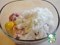2. В миску поместить фарш, лук, яйцо, посолить. |
