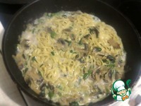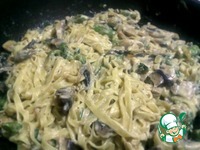 Отдельно в кастрюле варим пасту (у меня - Тальятелле, можно любую) до состояния аль денте.. |
