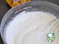 Белки взбить с сахаром в густую пену. Если любите в меру сладкое, добавьте 130 г сахара, 150г - будет чуть слаще. |