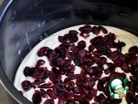 Смазать чашу мультиварки сливочным маслом, вылить половину творожной массы, выложить клюкву. |