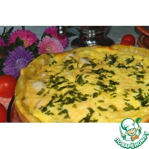 Залить пирог. Готовить на режиме "Выпечка" минут 60-70. Смотрите по румяности теста по бокам. В процессе выпечки пирог можно посыпать зеленью. |