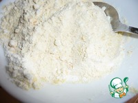 В просеянную муку добавить разрыхлитель теста, цедру апельсина, крахмал и кукурузную муку. |