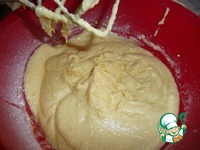 Муку добавить в масляно-яичную смесь и продолжать взбивать. |