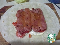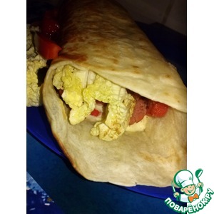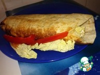 Описание: Вариация на тему сытного и вкусного завтрака... Микс продуктов, завернутых в нежную тортилью... за 15-20 минут можно приготовить 2-3 порции.