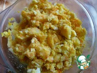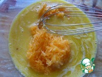 Затем тыкву, натертую на мелкой терке. Хорошо размешать. |