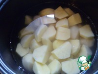 Готовим начинку. Я варила больше, чем нужно, чтобы и покушать. Здесь у меня 1 кг картофеля. Режим Мультиповар, 120 градусов, 45 минут. Когда закипит, посолить по вкусу. |