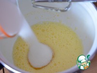 Миксером взбиваем 2 яйца. Постепенно добавляем сахар, продолжая взбивать. |