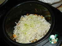 Затем добавить капусту, соль, специи и включить режим "Тушение" 25 минут. Затем готовую начинку переложить, а чашу немного остудить. |