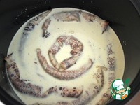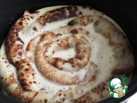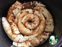 Чашу мультиварки смазываю сливочным маслом. Укладываю блинчики по принципу "улитки". Мне удобнее делать это от края к центру. Блинчики нужно укладывать плотно, швом вниз. |