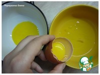 Белки взбить в пышную массу. Желтки взбить с щепоткой соли. |