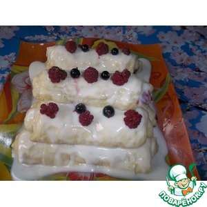 Выкладываем трубочки на противень, застеленный пекарской бумагой. Ставим в разогретую до 180С духовку, на 15 минут. |