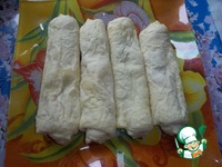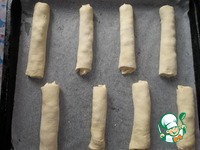 Получаются вот такие трубочки. Проделываем то же самое со второй частью теста. |
