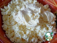 Необходимо смешать творог, сметану и ванильный сахар. |